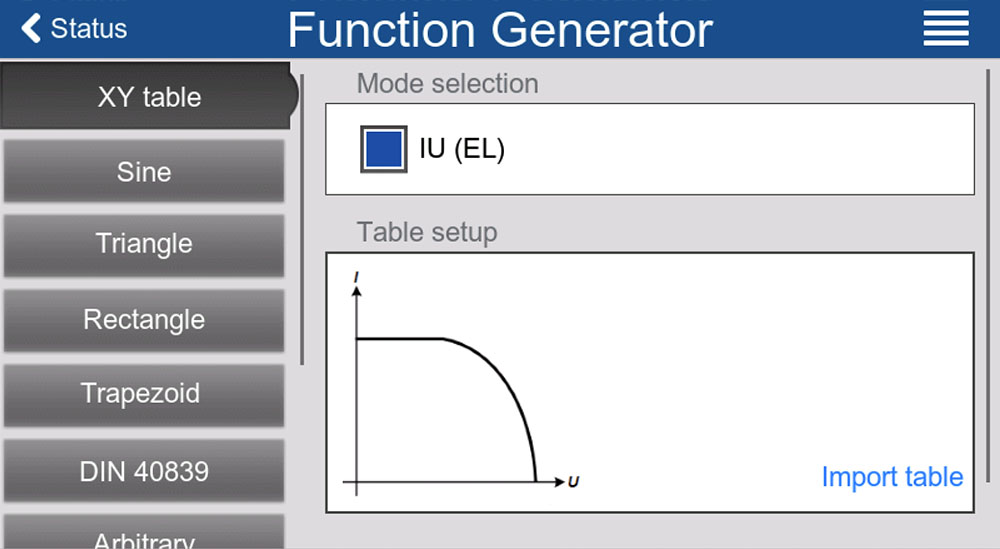 Within the XY Table the user can define different discharge current subject to different voltage, by loading this IV table to the unit.