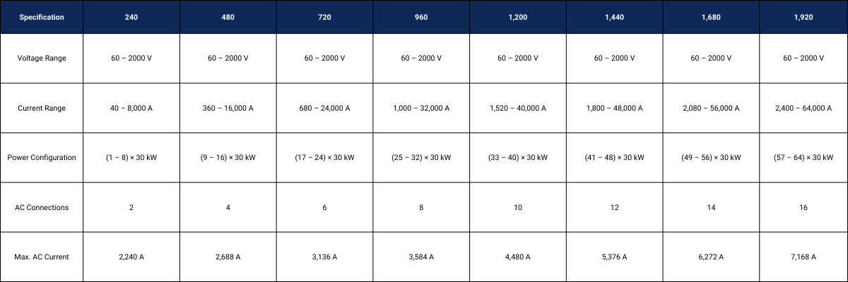 Unmatched Scalability: Reach up to 3.84 MW with only 13 racks, supporting up to 64 devices.
