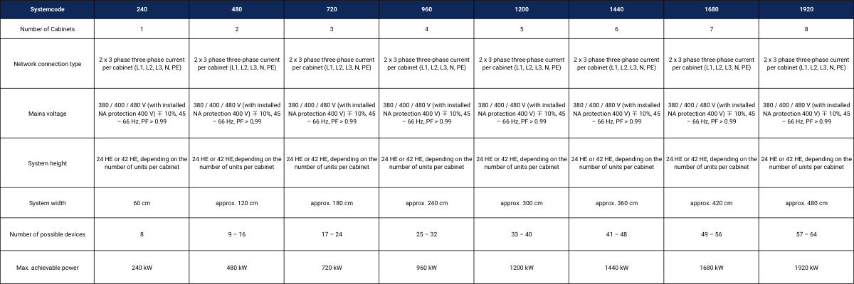 • Rated power up to 240 kW per cabinet or up to a maximum of 1920 kW as master-auxiliary system