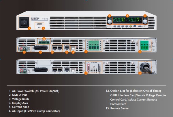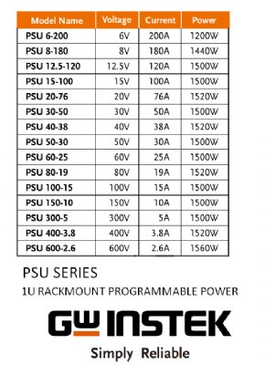 The GW Instek PSU-Series is a high-density 1U programmable DC power supply designed for precision and versatility in demanding test and measurement applications. With models ranging from 6V/200A to 600V/2.6A, this series delivers exceptional power density and efficiency in a compact 1U form factor compatible with 19" rack mount systems.